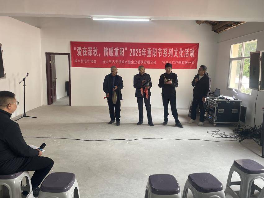 岁岁重阳,今又重阳,咸水黄花分外香。咸水村120多位老人欢聚一堂,共同庆祝属于自己的佳节。村民自编自演了《地花鼓》,弘仁医院的志愿者演唱了《为了谁》《一晃就老了》,镇村干部踊跃展示才艺,演唱了《军中绿花》《九月九的酒》《我和我的祖国》等,将节日氛围推向高潮。村里的老人情不自禁地哼唱起来,脸上洋溢着笑容,双手不停地鼓掌,满是幸福之感。