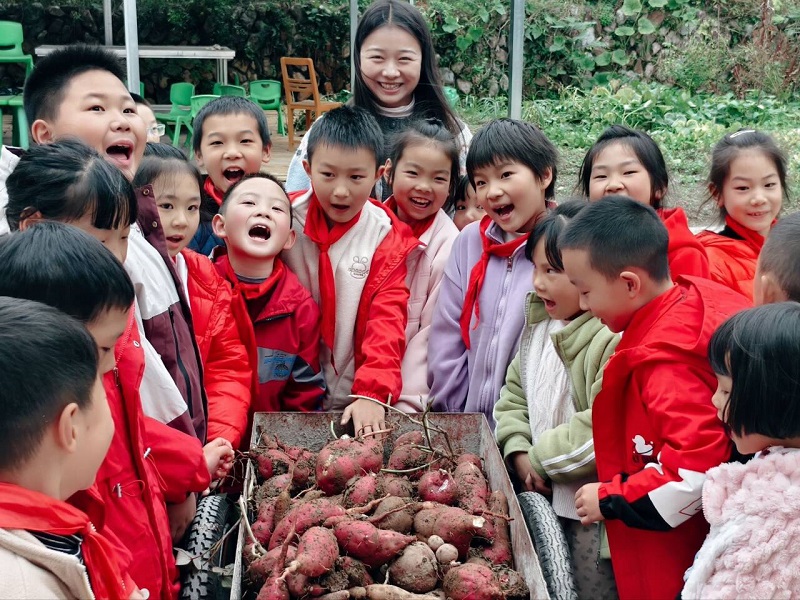 “老师你看!我挖的红薯像宝葫芦!”“哇塞,快看我挖到了一个超级大的!”农场里,欢呼声、笑声与工具碰击泥土的声响交织成热闹的“劳动乐章”。师生们分工合作,有的专注挖掘、有的仔细分拣、有的忙着搬运,不一会儿,停靠在田边的漏斗车就被装满了。看着亲手种植的红薯堆得满满当当,孩子们纷纷感慨:“原来挖红薯这么累,以后再也不浪费粮食了!”“劳动虽然辛苦,但看到收获的那一刻,心里特别开心!”另外,学校还特别计划,在本周五将此次收获的红薯分装成便携小份,让每位参与活动的学生带回家中,与家人一同分享劳动成果的甜蜜。