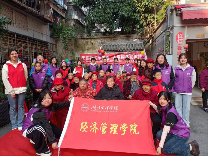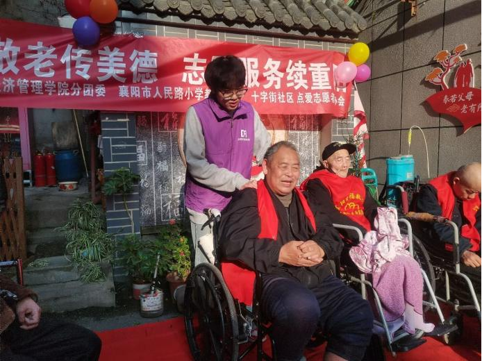 湖北日报客户端讯(通讯员黄莉 、徐曼博 )岁岁重阳,今又重阳。近日,十字街社区联合湖北文理学院经济管理学院分团委、襄阳点爱志愿者协会,在重阳节到来前来到襄阳市祥福敬老院,开展了以“孝亲敬老传美德,志愿服务续重阳”为主题的敬老活动。