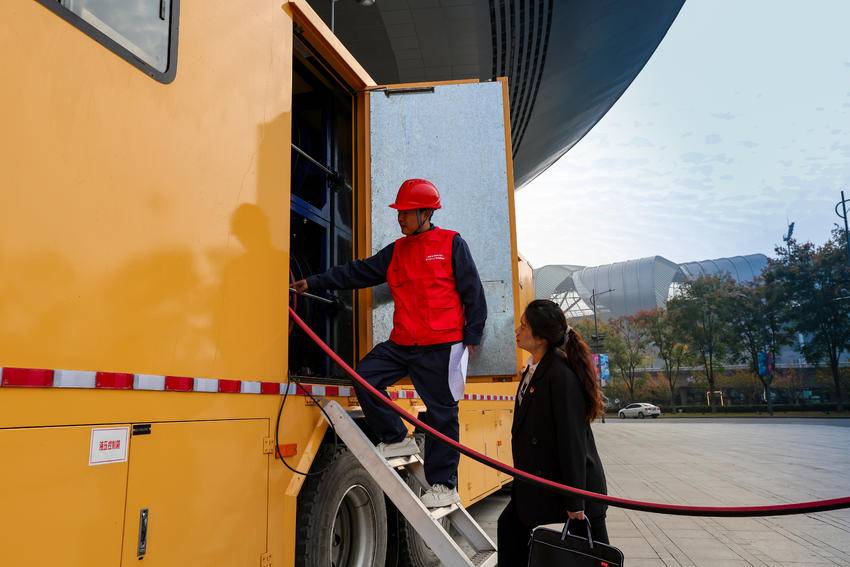 “这台发电车的电缆接口绝缘层需要再检查一遍,确保万无一失。”在电影节主会场外的发电车旁,纪检工作人员与保电技术人员一同,对发电车的接线工艺、设备情况、切换流程进行了逐一细致的检查。