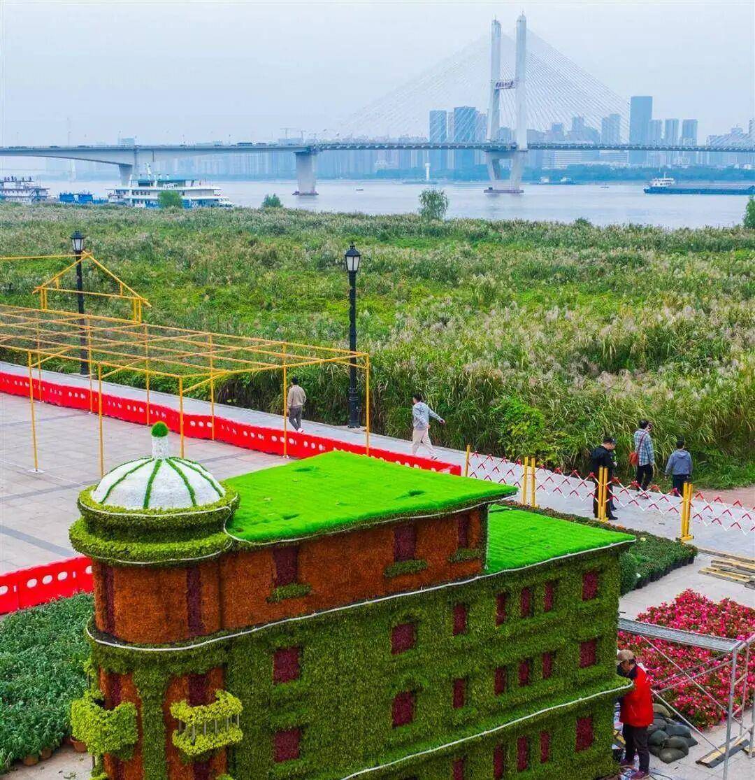 汉口江滩公园展区布展工作正在紧锣密鼓推进中。