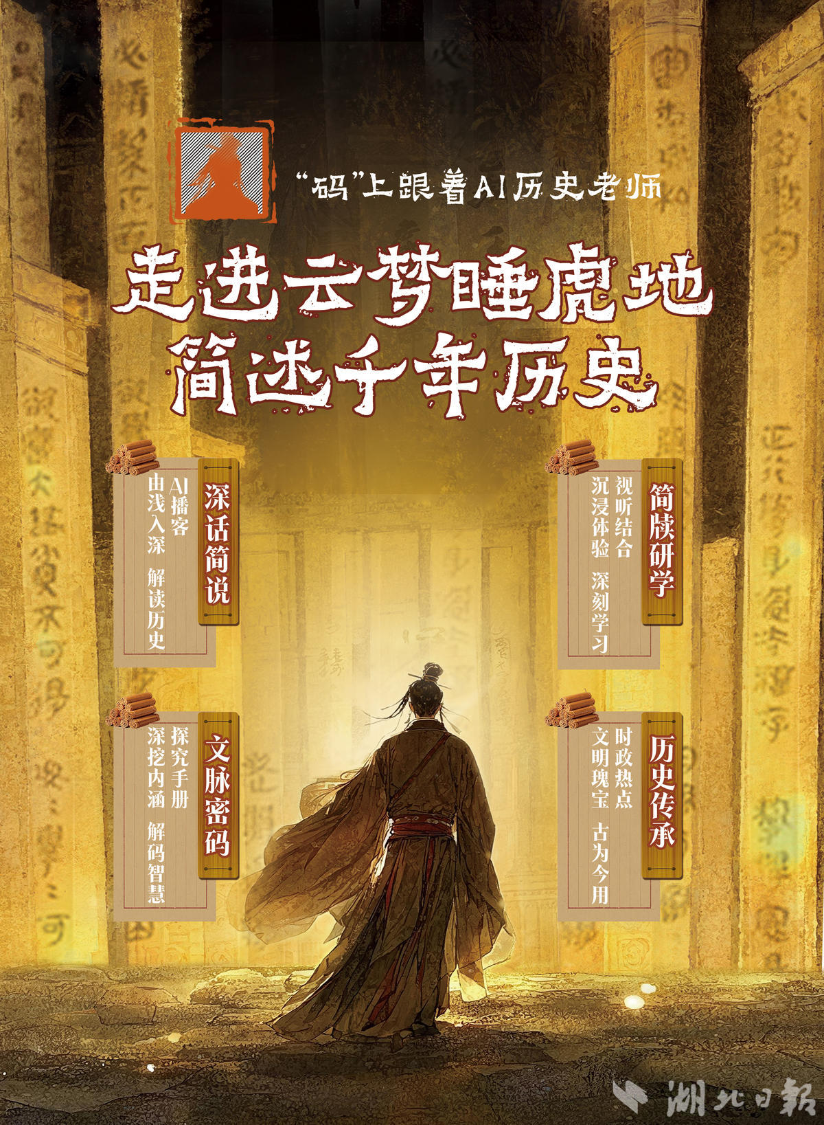 2025年是云梦睡虎地秦简出土50周年。为纪念这一重要节点,楚天书局联合湖北省文物考古研究院、湖北省博物馆,共同策划再版《云梦睡虎地秦简——让秦国历史“活起来”》一书,运用BOOKSGPT底层大模型,将原版纸书升级为具有交互能力、读者服务能力的“现代纸书”,引入AIGC数字化技术应用,链接《简牍探中华》《寻古中国》等一系列优质音视频资源,借助信息技术和人工智能,突破内容、时间、空间的限制,给读者提供一站式解码国宝档案的数字化应用平台。