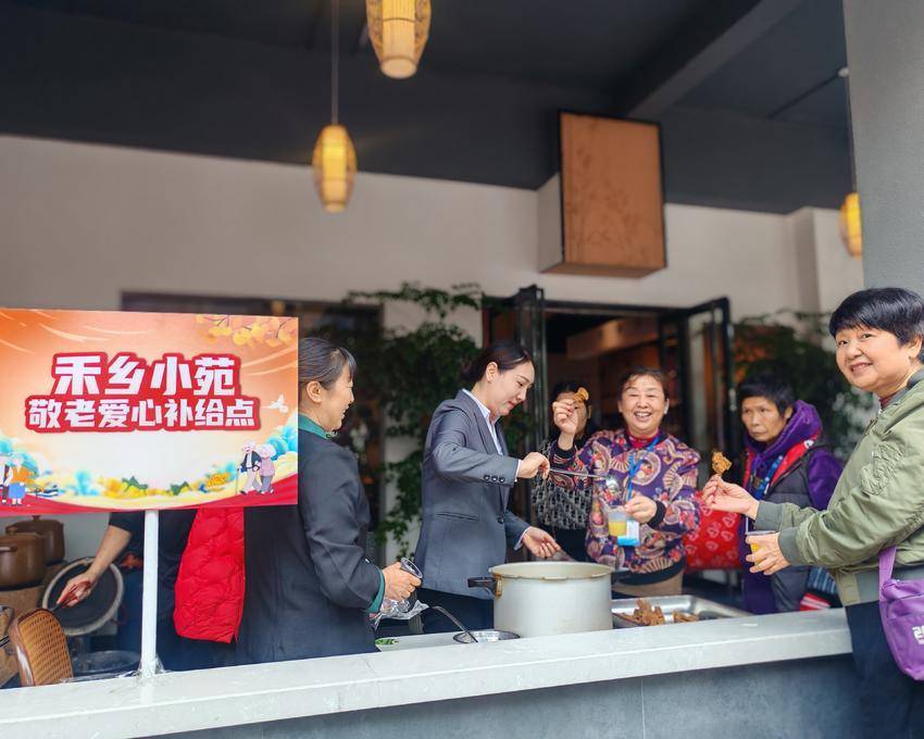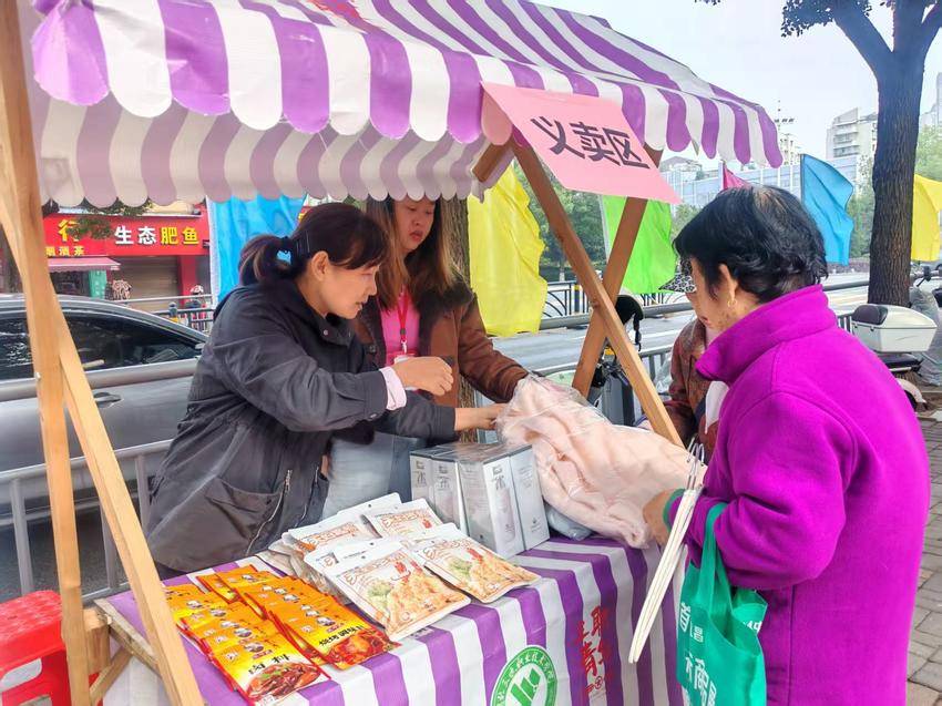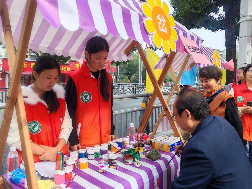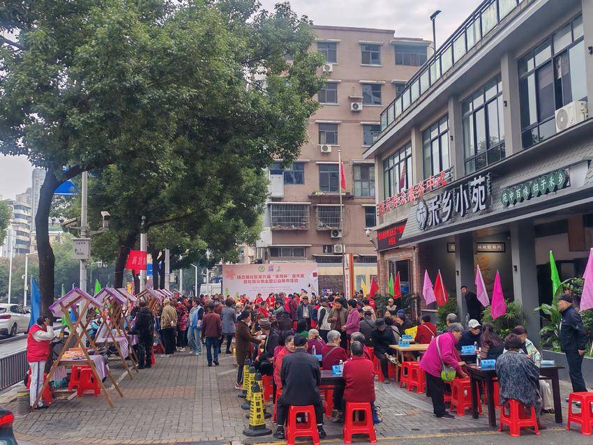 旁边的公益集市更是“干货”满满,有能学知识、玩游戏的垃圾分类互动游戏,有免费理发、健康义诊、牙科眼科义诊、中医按摩、旧衣回收、爱心义卖的便民服务,有石趣绘艺、艾草锤制作体验,还有爱心企业禾乡小苑提供的暖心重阳糕和爱心鸡汤。