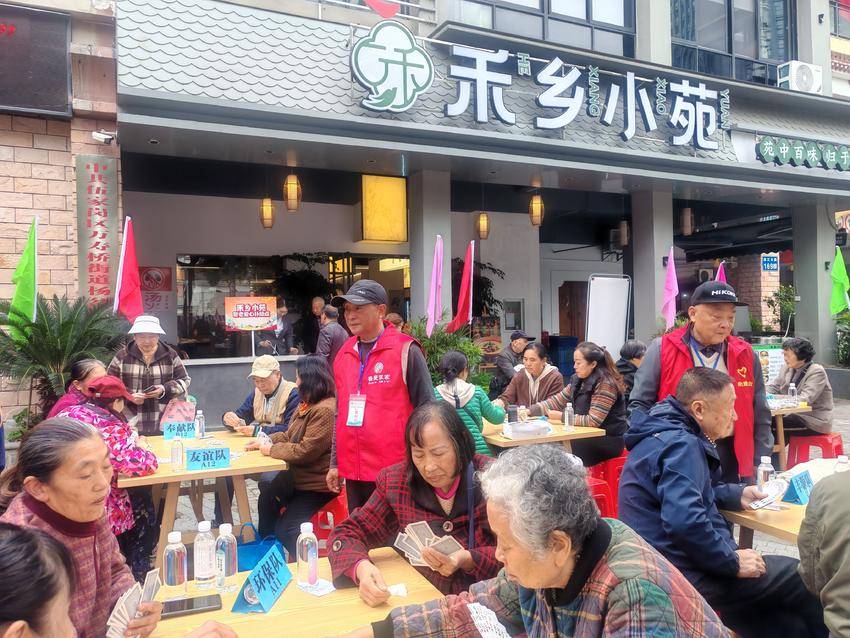 此时,双升大赛现场早已座无虚席,128名选手蓄势待发,个个信心十足,他们当中,既有默契十足的老搭档,也有初次组队的邻里新手。参加活动的领导上台通过击鼓助威的方式,宣布大赛正式开始。比赛以抽签方式确定对抗双方,并进行淘汰赛,胜者进入下一轮比赛,选手们围坐桌前,出牌时凝神思考,闲聊时笑语盈盈,牌桌成了拉近距离的纽带。通过4轮角逐,最终评选出一、二、三、四等奖各一对,以及优胜奖、纪念奖若干。“平时各忙各的,这下和邻居们凑在一起打牌聊天,比什么都热闹”,尽管在第一轮比赛中不敌对手,退休居民杨师傅依然笑着说。