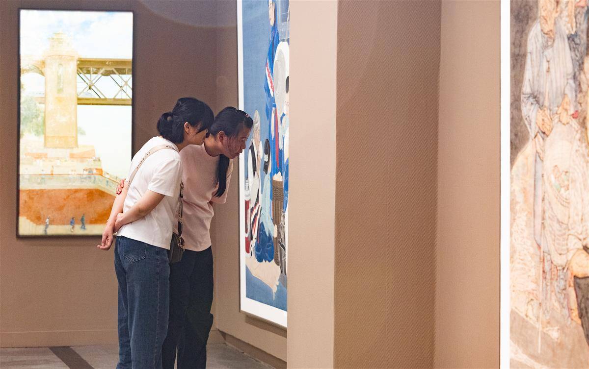在湖北美术馆,“新象长江”主题美术作品展吸引了众多市民及美术爱好者前来观展。约120件涵盖中国画、油画、版画等多种艺术形式的美术作品在此集中展示,勾勒出万里长江的自然美、人文韵、变迁史。一位美术老师带着学生前来观展,他说:“这样的展览是难得的艺术课堂,让学生们近距离接触优秀作品,感受艺术家们对长江的独特理解和表达,比在书本上学到的知识更生动、更深刻。”
