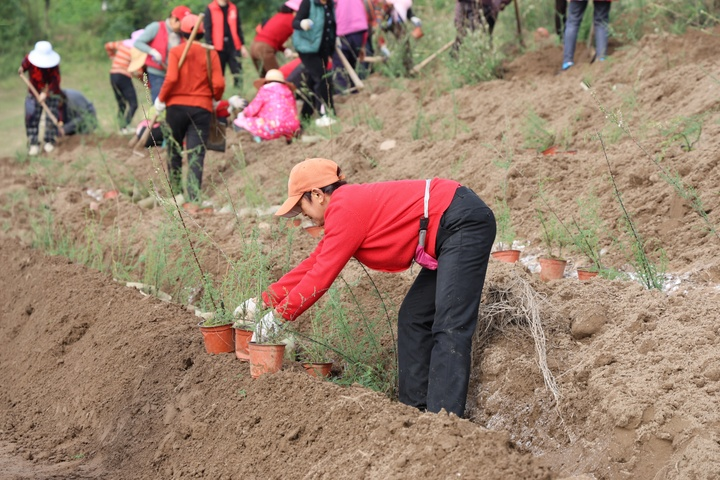 湖北日报讯(记者万雷萌、通讯员朱会军)近日,一场珍稀植物野外回归行动在宜昌市枝江市顾家店镇关洲江滩公园实施。三峡植物园管理处联合关洲珍稀动植物保护站,将2000余株人工繁育的国家二级保护植物疏花水柏枝幼苗,移栽至长江沿岸护堤区域,标志着这一曾因三峡工程蓄水而濒临灭绝的“长江生态哨兵”,正式踏上了回归自然家园的征程。