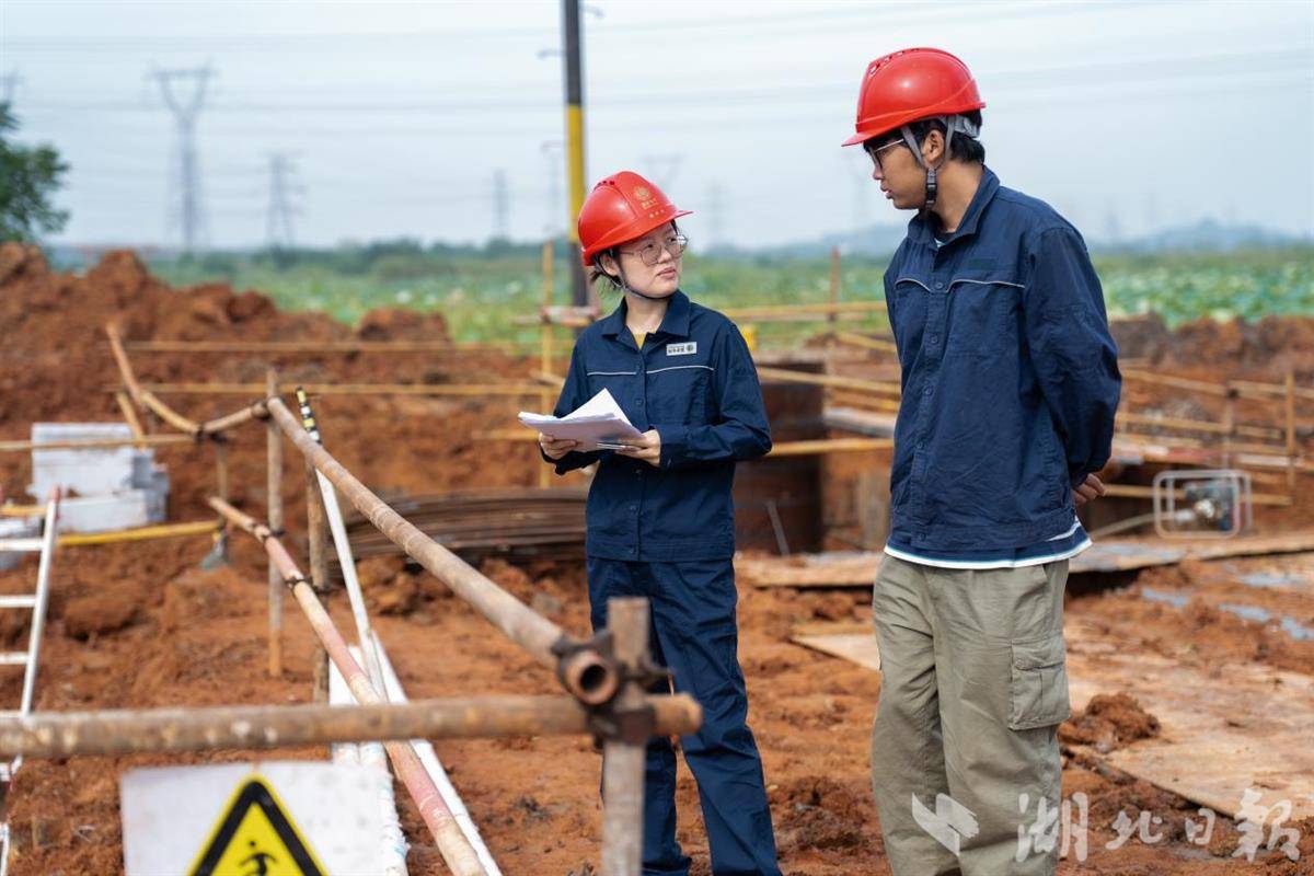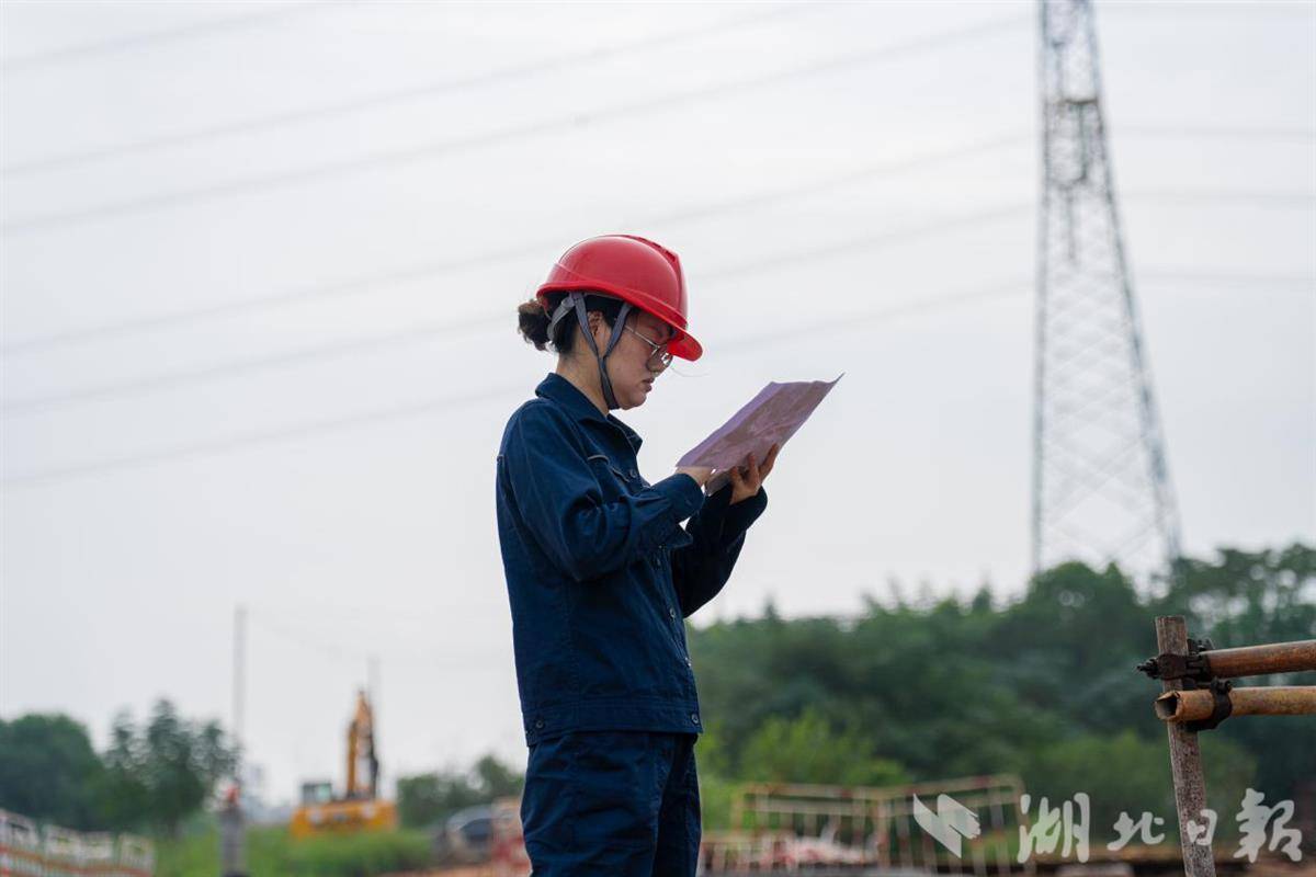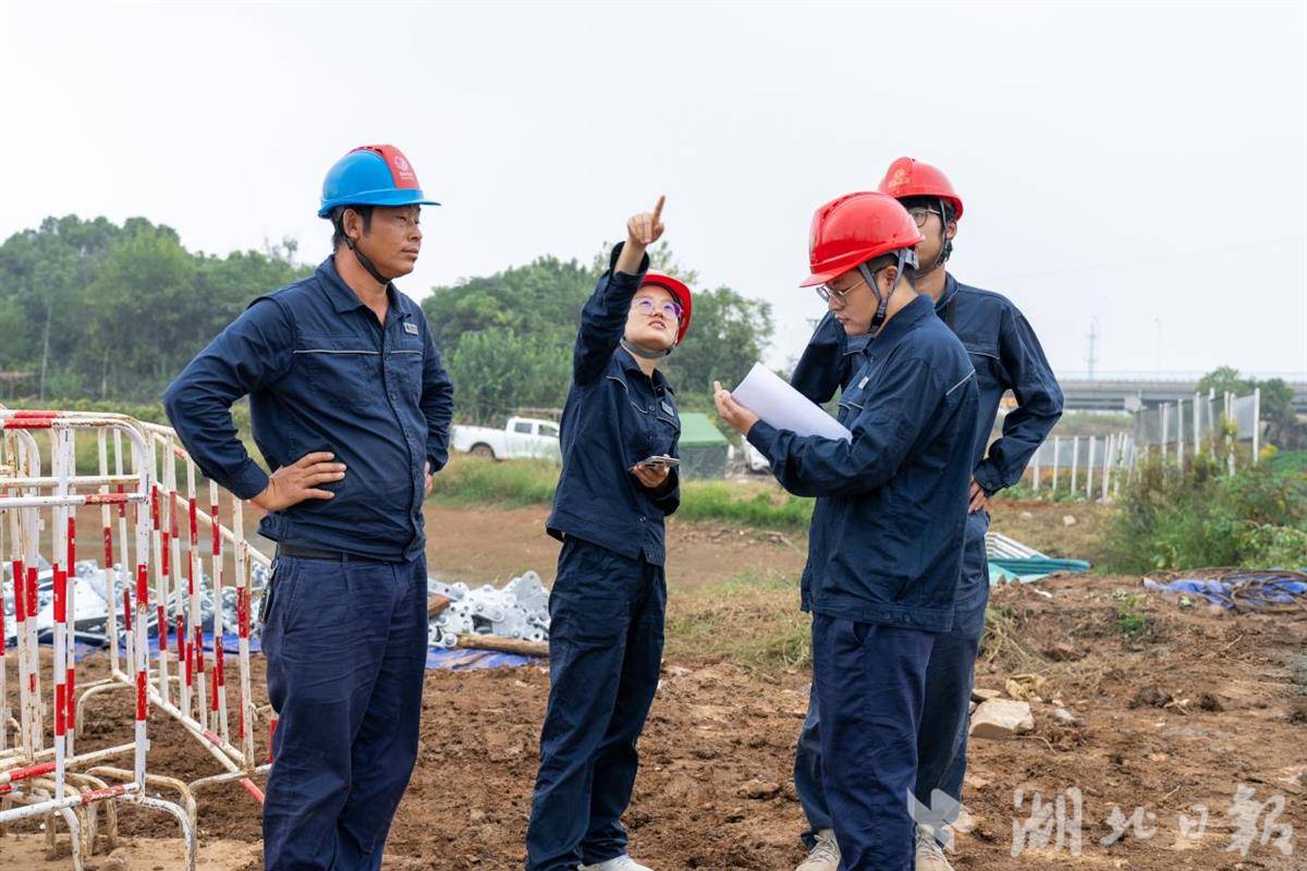 在武汉蔡甸区军山街道官莲湖路与通顺大道交叉口的500千伏葛(洲坝)军(山)、汉(川)军(山)超高压改接工程现场,总能看到一个娇小的身影穿梭在铁塔与施工机械之间。昨日,湖北日报全媒记者看到她时,她正核对现场工序,时而打开安管系统核对作业计划,时而对着电话那头叮嘱停电办票手续。