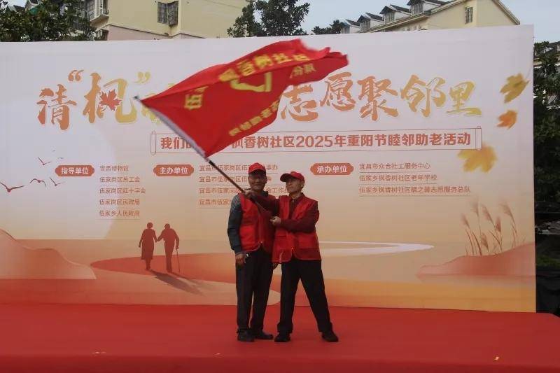 活动现场正式为“枫邻助老志愿服务队”授旗,队长杜远县分享了这一年来开展助老服务工作的感人点滴并发出服务倡议,展现了社区自我服务、邻里互助的生动实践。