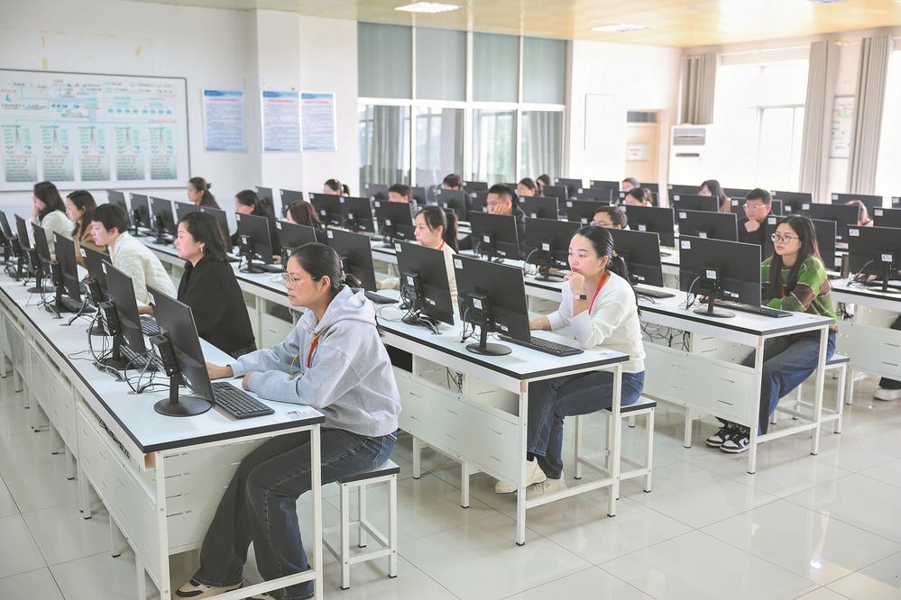 图为参赛选手进行理论知识考核。(来源:襄阳日报 杨东 摄)