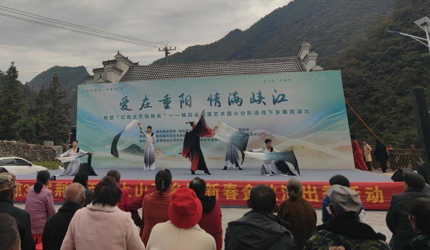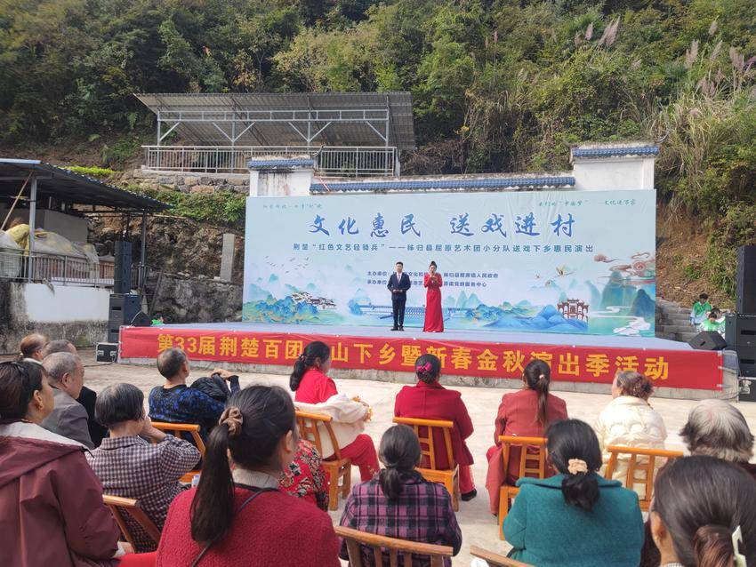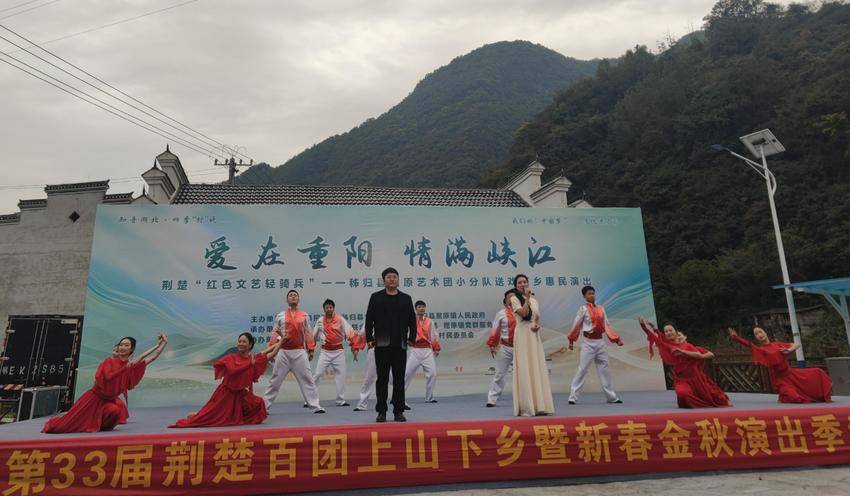 湖北日报客户端讯(通讯员郑梦婕、向学文)恰逢重阳节,荆楚“红色文艺轻骑兵”——秭归县屈原艺术团小分队走进屈原镇多个村居,开展“送戏下乡”惠民演出,为当地群众送上多场精彩的文化节目。
