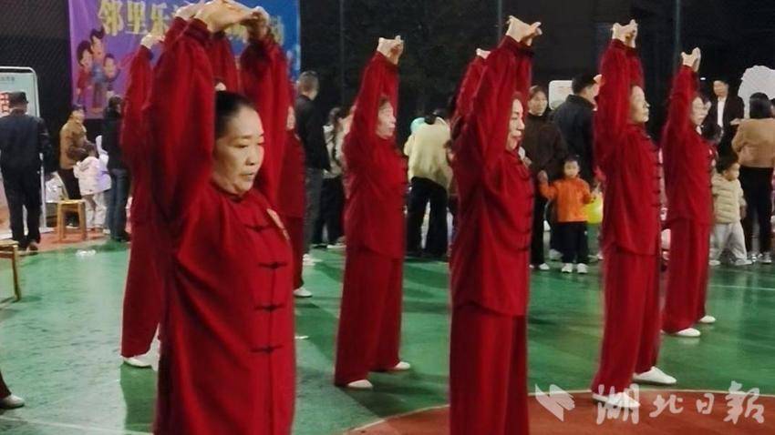 夜幕降临,活动氛围再掀高潮。太极表演如期登场,表演者身着素雅练功服,在柔和的灯光下缓缓起势。抬手如行云流水,落步似稳如磐石,一招一式舒展从容,将太极的刚柔并济展现得淋漓尽致。围观的老年业主纷纷驻足欣赏,有的轻声赞叹,有的不自觉跟着比画,现场宁静而祥和,为重阳佳节增添了一份独特的传统文化韵味。