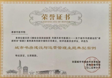 在此次交流活动中,孝感市图书馆提交的《精绘全民阅读版图,共建共享书香澴川——关于城市书房建设的“孝感样本”探索案例》脱颖而出,经过评选委员会的严格评议,荣获《城市书房建设与运营管理主题典型案例》奖项。该案例展示了孝感市在城市书房建设方面的创新实践和显著成效,为其他城市提供了可借鉴的经验。