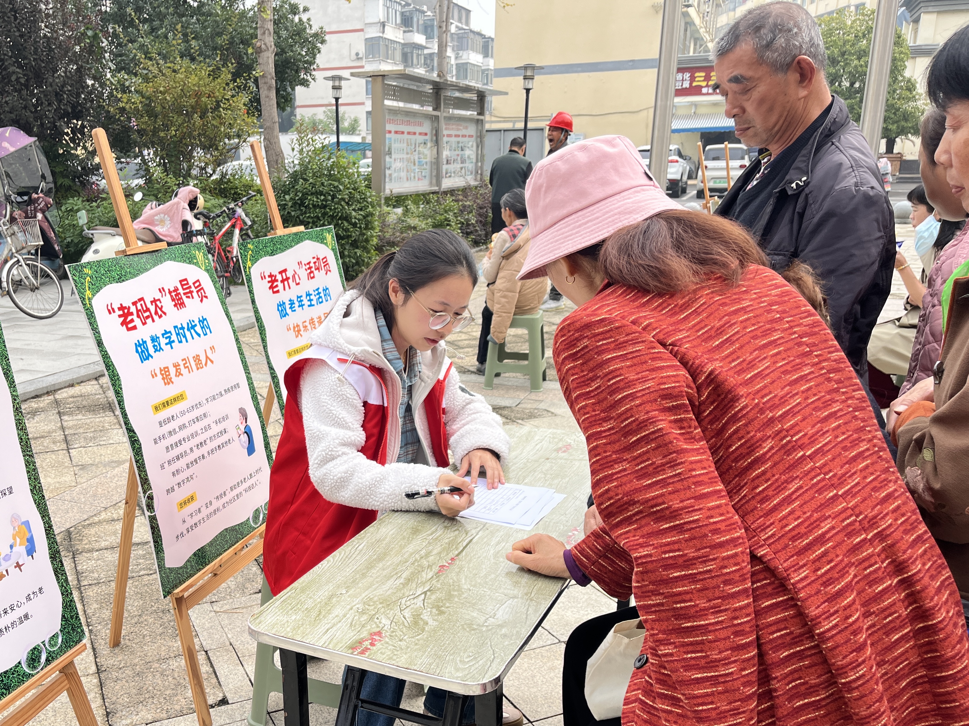 招募现场,社区志愿者通过展板讲解、案例分享等方式,细致介绍岗位职责与服务流程;老人们热情高涨,或围在咨询台询问细节,或现场填写报名表。68岁的李大爷说:“重阳节能找到为邻里服务的机会,感觉自己越活越年轻!”