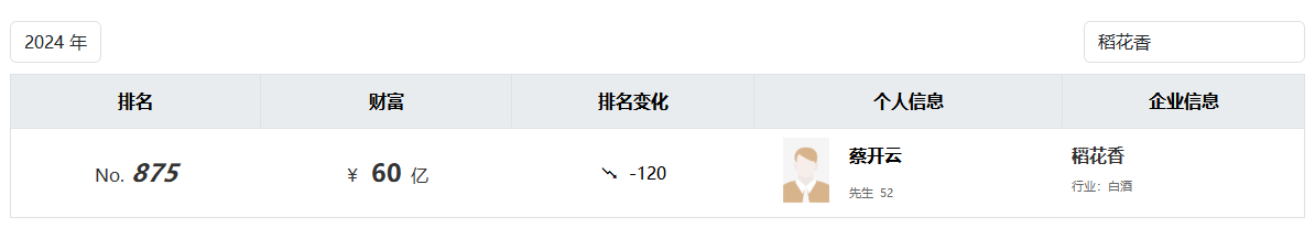 这11名上榜的酒企人士中,仅两名企业家对比去年排名有所提升,其中包括蔡开云。