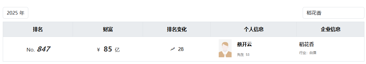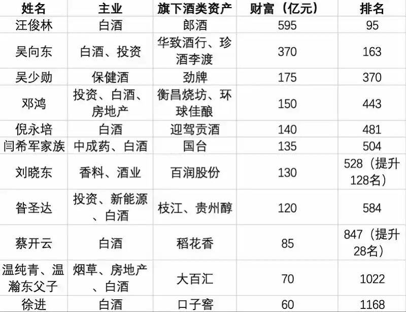 2025年胡润百富榜中酒企人士