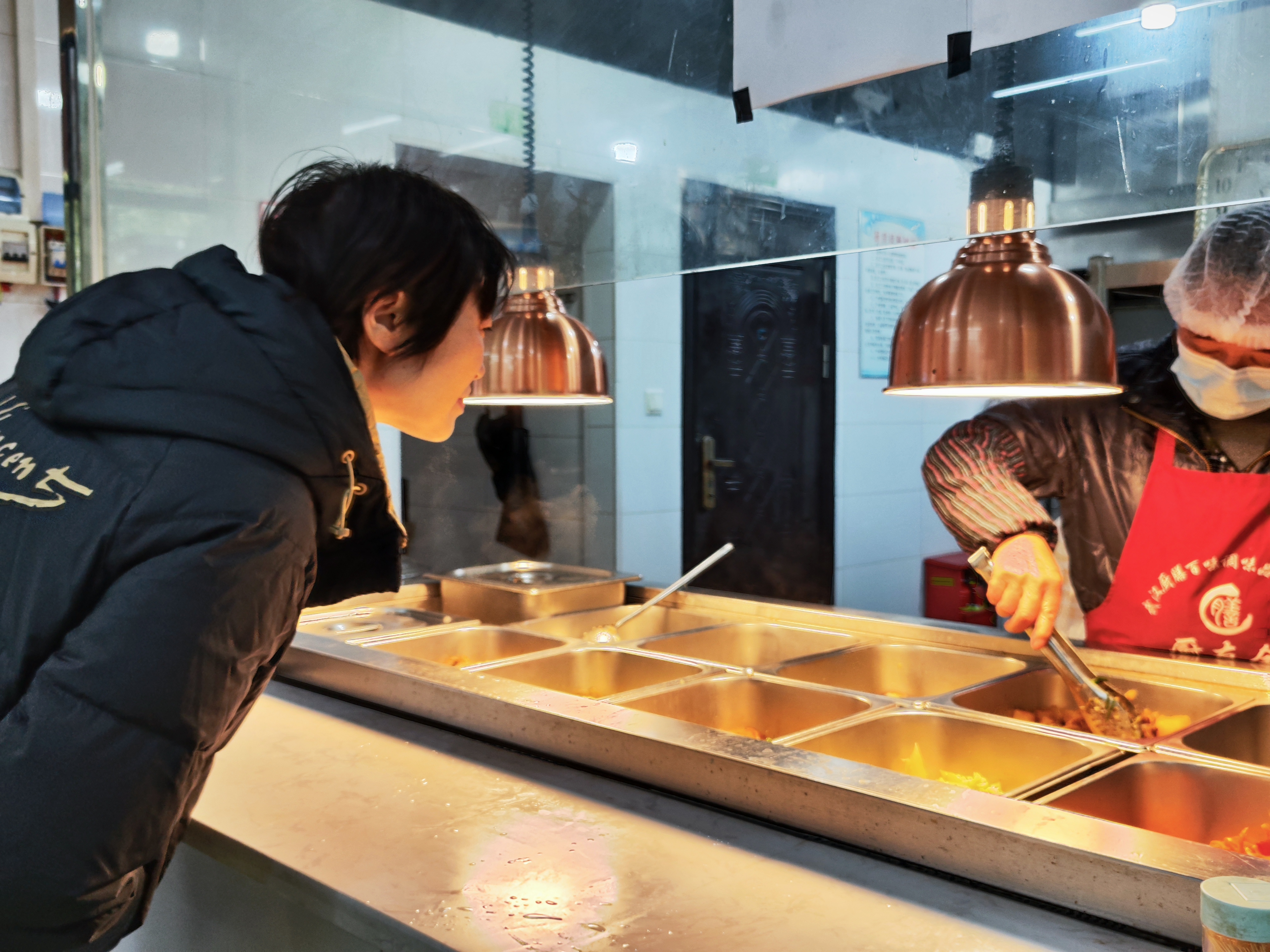 这份情怀,也延续到对新就业形态劳动者群体的关照。食堂偶尔需为腿脚不便的老人送餐,他便邀请外卖员快递员等新就业形态劳动者参与进来:只要送餐两次,就能免费吃一顿,他们就餐也享10元优惠价,供餐时间更延长至下午两点半。“90后”外卖员刘兵成了送餐队伍一员,在这里干了小半年,他说:“这行吃饭没准点,十块钱能吃好一餐,很实在。顺便为老人服务,心里更暖和。”
