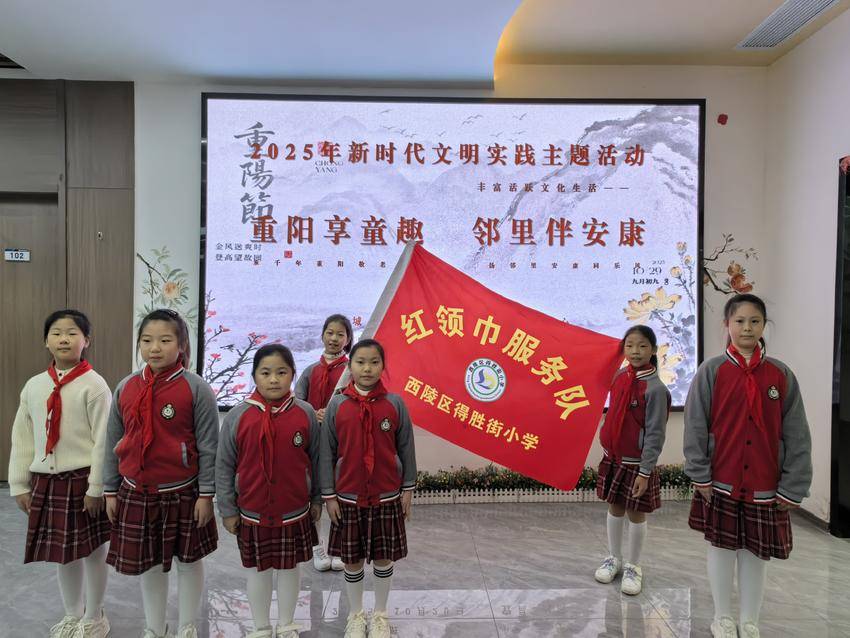 湖北日报客户端讯(通讯员王青、朱芮莹)10 月 29 日,农历九月初九,宜昌市西陵区得胜街小学组织“红领巾服务小队” 走进西陵区学院街道环城北路社区,以 “重阳享童趣 邻里伴安康” 为主题,参与社区新时代文明实践活动,用富有活力的表演和真诚的陪伴,为社区老人送上节日祝福,也让学校 “红领巾进社区” 德育品牌在敬老爱老的实践中熠熠生辉。