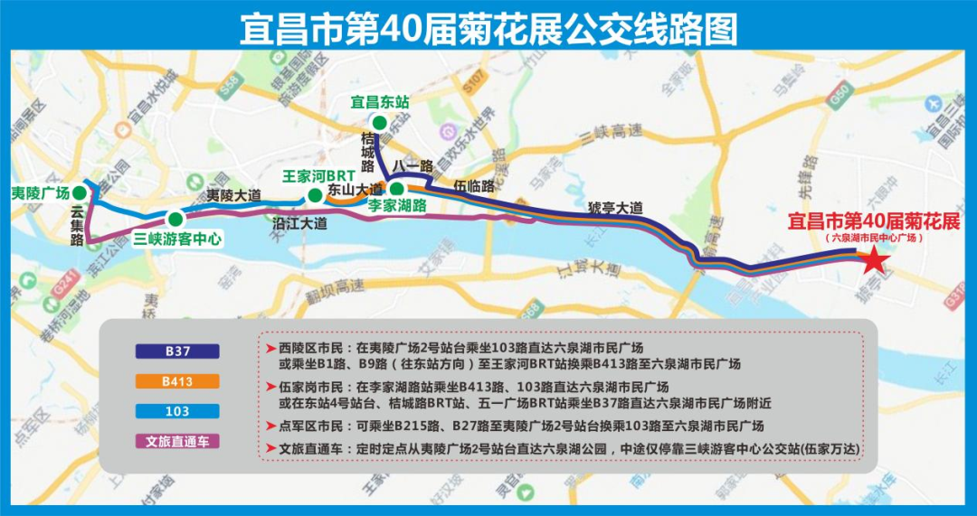 夷陵区市民可乘坐109路至市图书馆站换乘103路到达六泉湖市民广场附近;