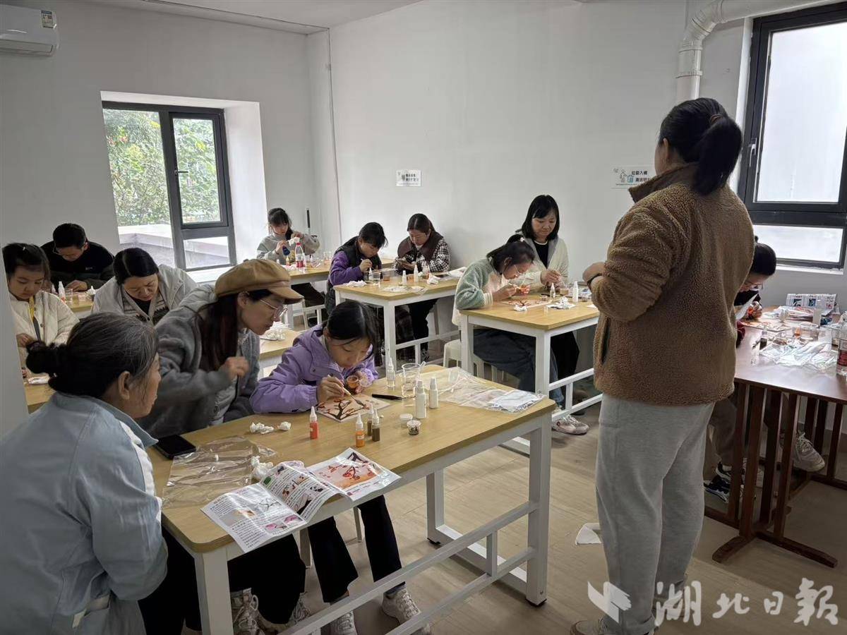湖北日报讯(记者李光正、通讯员杜暄)近日,在武汉东湖高新区九峰街道荣芳里社区,荣芳学堂公益课程第二期——以“霜降”为主题的掐丝珐琅课堂圆满收官。十组亲子家庭通过拓印、掐丝、调沙三阶段体验式活动,将霜降时节的柿子意象融入非遗创作,不仅让国家级非物质文化遗产在指尖绽放节气之美,更以文化服务激活社区公共空间、激发社区文化创作。