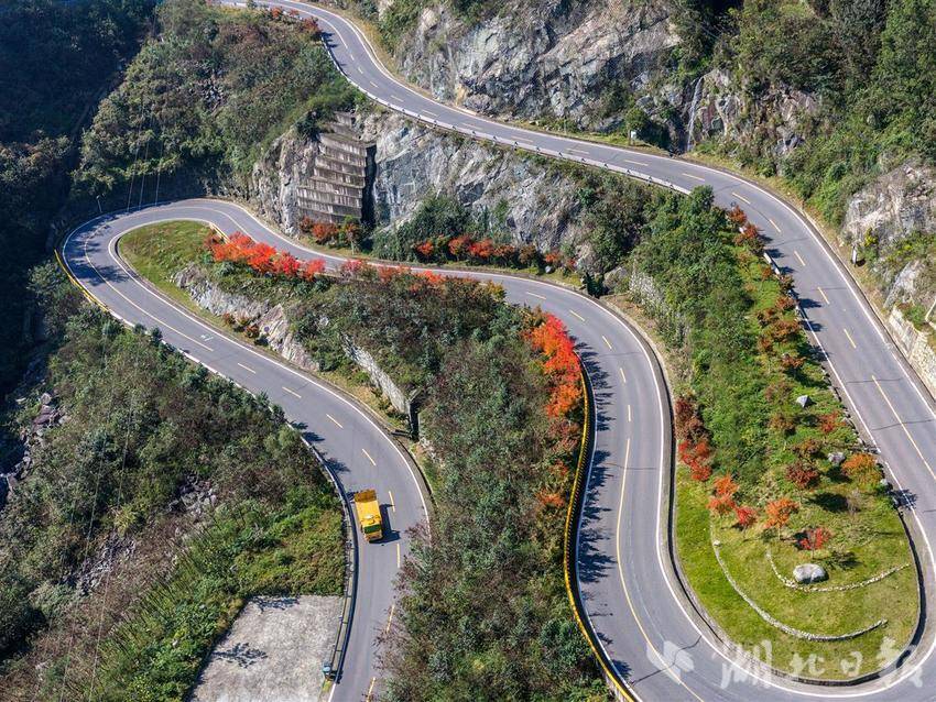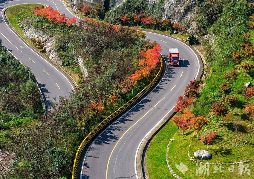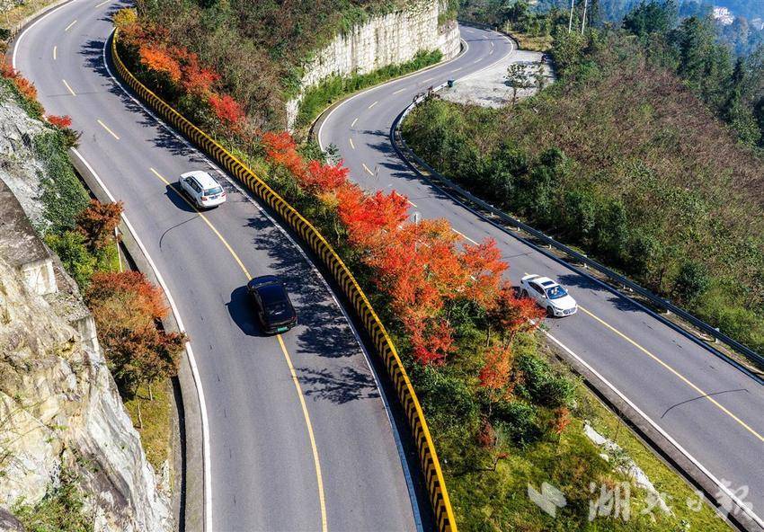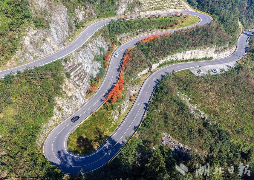 10月28日,车辆行驶在秭归县茅坪镇蜿蜒的盘山公路上。秋意渐浓,秭归县蜿蜒曲折的山路在色彩斑斓的森林中向前伸展,构成一道靓丽的深秋乡村生态风景线。近年来,当地贯彻人与自然和谐共生的理念建设“四好”农村公路,为群众提供了便捷的交通条件,更为乡村的产业发展打开了致富新通道。(视界网 王罡 摄)
