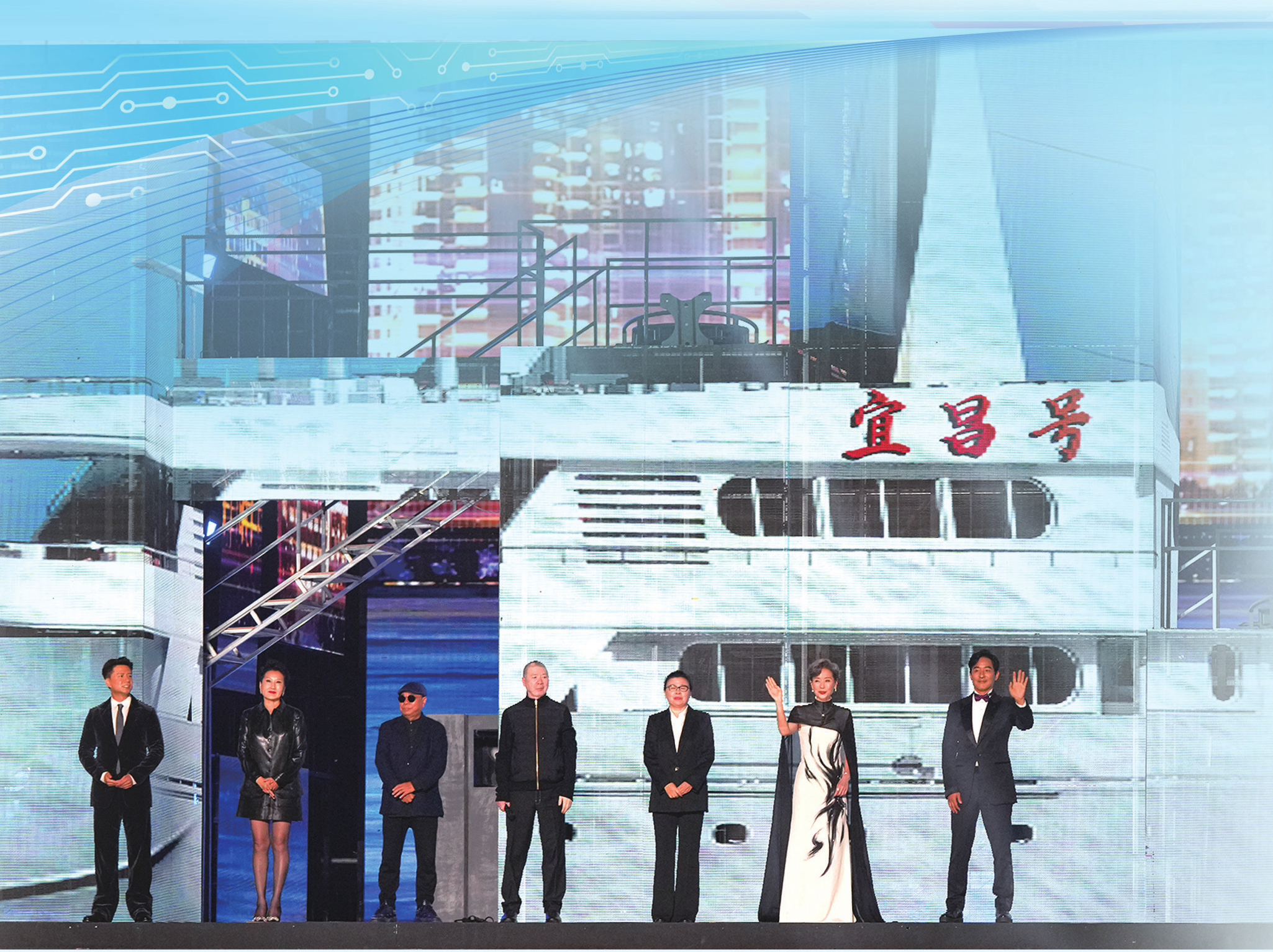 10月30日,2025长江文化艺术季闭幕式&2024-2025年度中国电影大数据暨电影频道M榜荣誉之夜在宜昌奥林匹克体育中心举行,推委会成员“乘”光影之舟“宜昌号”闪亮登场。 (付蓓蓓 摄)