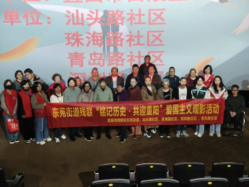 湖北日报客户端讯(通讯员张宇)10月29日下午,西陵区东苑街道残联在水悦城幸福蓝海国际影城组织开展了“铭记历史·共迎重阳”爱国主义观影活动。本次活动共吸引辖区29名残疾人及家属、8名志愿者和1名医务工作者参与。