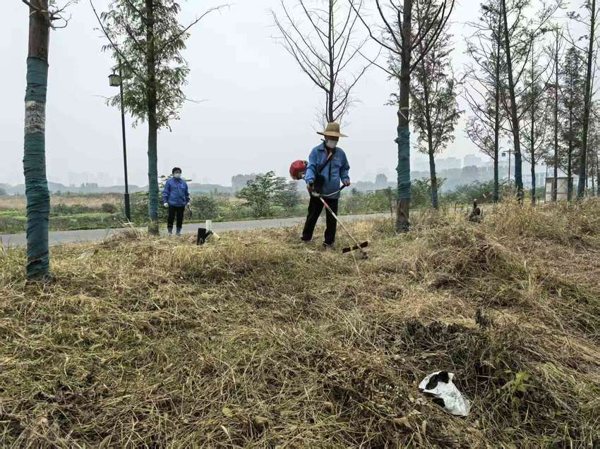 当天下午,清理行动正式开始。社区工作人员提前准备好了割草机、镰刀、铲子、垃圾袋等工具,大家分工明确,配合默契。割草机在草丛中轰鸣作响,所到之处,杂乱的青草被整齐地割除;志愿者们手持镰刀,对一些割草机难以触及的角落进行清理,他们弯着腰,仔细地将杂草连根拔起;还有部分人员负责将清理后的青草装袋、搬运,确保现场干净整洁。
