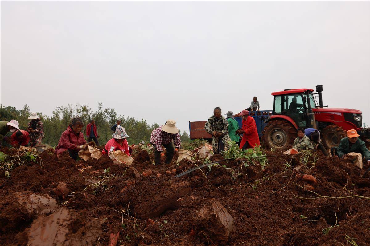 农民们正在收获红薯。(通讯员 刘毅 摄)