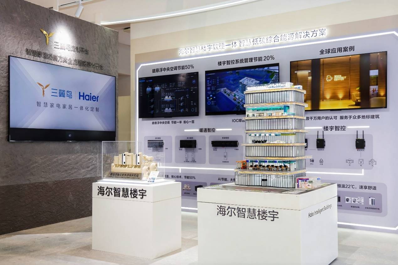 在智慧楼宇板块,磁气悬浮中央空调、AI多联机、智控组件、智慧能源管理平台——这些硬核科技也共同构成了海尔智慧楼宇的“软硬一体化”方案。与传统方案相比,该方案的最大亮点在于实现了“设备节能”与“算法节能”的双重突破,不仅在设备上实现节能50%效果,而且通过AI算法分析建筑使用习惯、天气变化、电网负荷等多维数据,让整个建筑“会思考、能决策”,再节能20%左右。