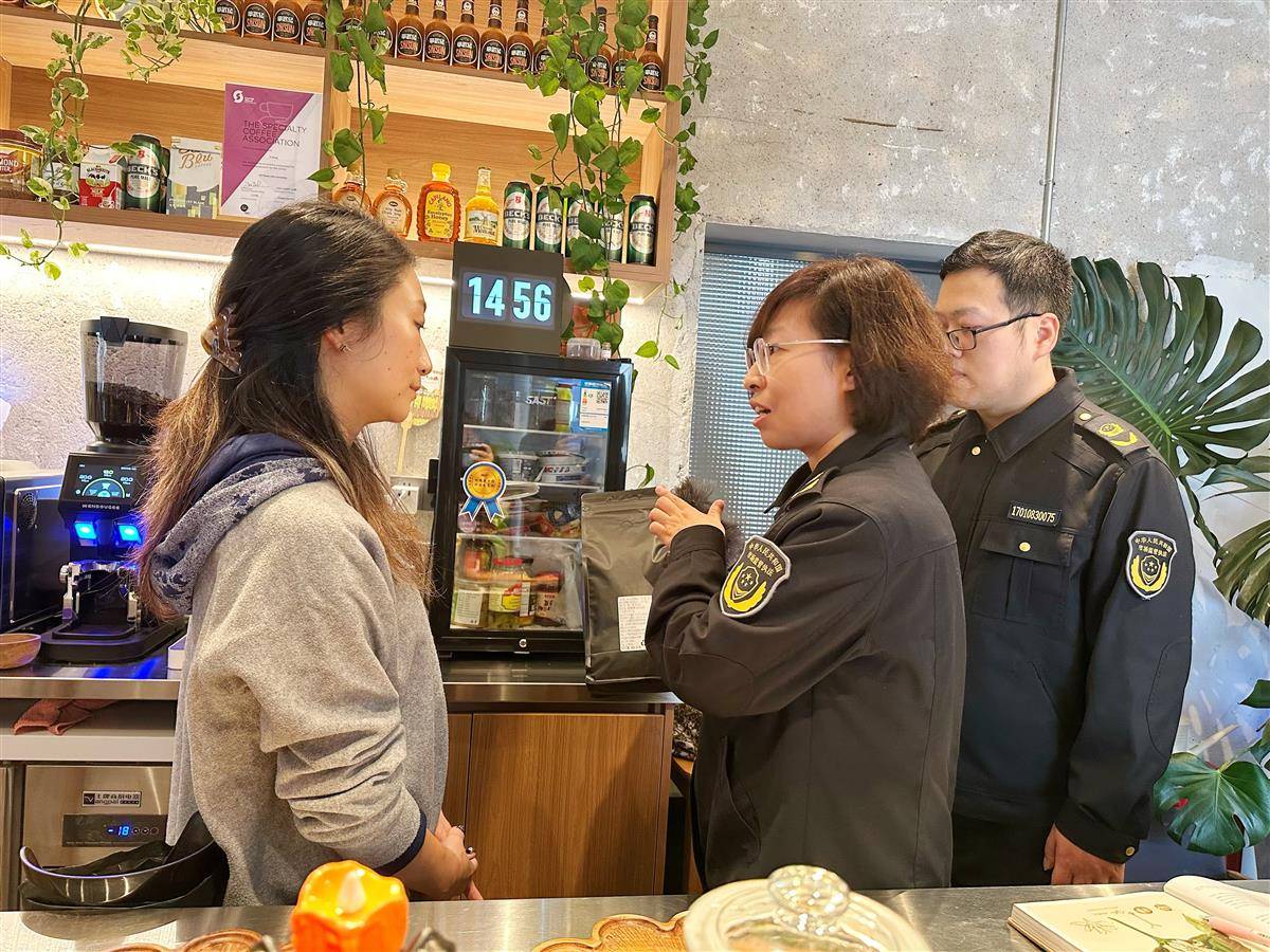 “消费者大多购买的是烘焙后的咖啡豆,这类咖啡豆的储存有三个关键点需要注意。” 检查过程中,执法人员董蕾还结合消费者普遍关注的咖啡储存问题,进行实地科普:“第一是密封性,烘焙后的咖啡豆内部呈蜂窝状结构,极易与空气接触发生氧化,影响口感和品质,建议使用密封罐或预包装密封袋储存,有条件的话用真空罐储存效果更佳;第二是避光,阳光照射会加速咖啡豆的氧化过程,导致风味流失,所以储存时要选择阴凉避光的地方;第三是温度,购买后的熟豆最好分装成每次食用的分量,放入冰箱冷冻或冷藏保存,这样能最大程度保留咖啡豆的香醇口感。”