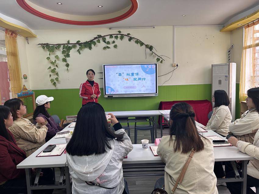 会议环节,胡园园老师向家委会成员开展了“学前教育普及普惠知识宣传”,帮助家长了解相关政策动向。保教主任吴悠老师就本学期保教工作重点作了详细汇报。随后,分管负责人刘娟园长宣导了膳食委员会制度。保健老师雷雪霏围绕营养食谱制定、幼儿体检反馈及秋冬季传染病防控等内容,进行了专业细致的分享。