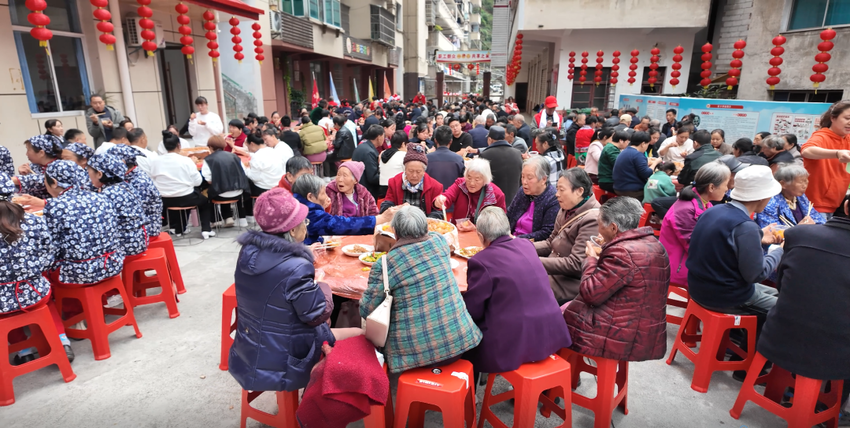 文艺表演结束后,情意浓浓的“格子宴”温暖开场。乡亲邻里围坐一堂,品清茶、尝糕点,畅谈生活、互致问候。一笼笼热气腾腾的“抬格子”不仅满足了味蕾,更成为连接彼此情感的纽带。大家边吃边聊,笑语声声,温情流动,在美食与交谈中深切感受到“家”的温暖与团聚的幸福。