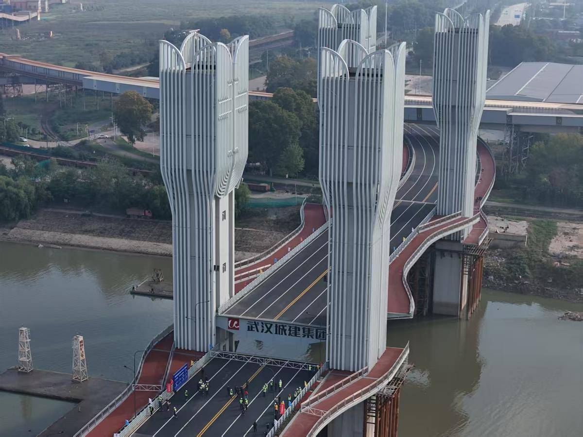 支点财经讯(记者 林楠 通讯员 蒲凯伦 余思思 李晟锋 赵亚斌 章振军)10月31日,由武汉城建集团投资建设的右岸大道北段(建设十一路-焦沙二路)工程段控制性关键节点——右岸大道开启桥正式建成,进入试通车阶段。右岸大道开启桥位于武钢工业港,是湖北省也是华中地区首座开启桥,桥梁可升降部分全长104米,塔柱断面最宽处46.2米,最大可提升27米,提升重量2650吨,上述四项数据(提升长度、宽度、高度、重量)在同类型开启桥梁中处于领跑地位,居于亚洲第一。