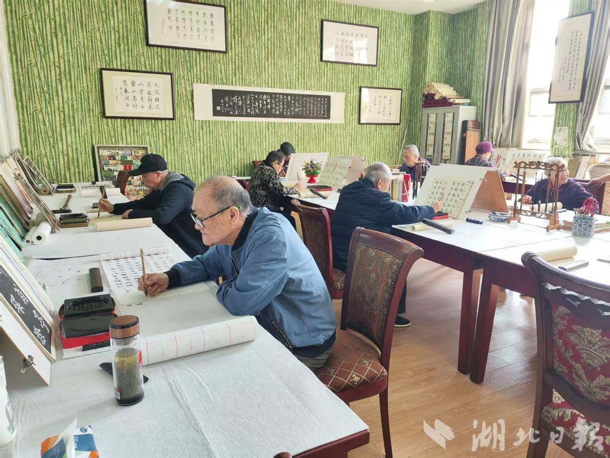 老人们在练习书法。(湖北日报全媒记者李光正摄)