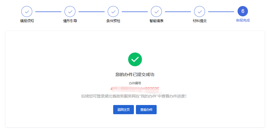 第十步:完成材料上传、一表填报,成功提交。