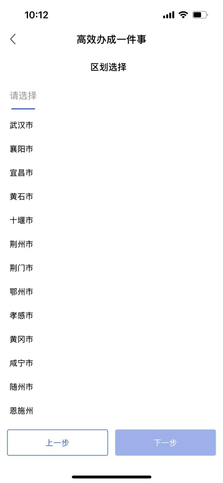图:鄂汇办APP个人身后“一件事”办理区划选择