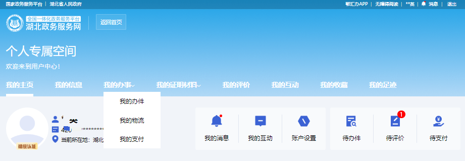 图:湖北政务服务网用户空间页面