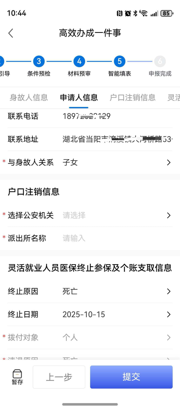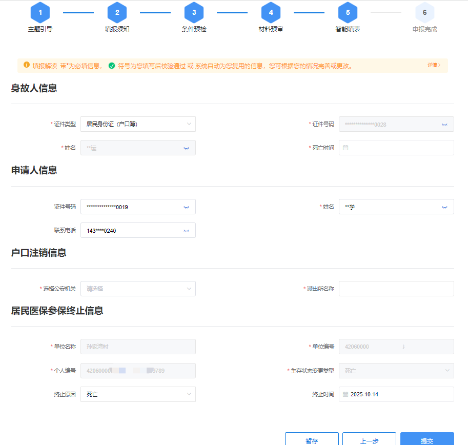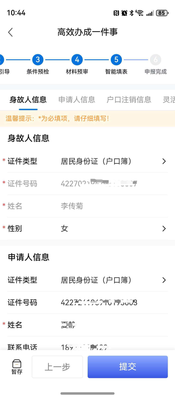 图:鄂汇办APP个人身后“一件事”智能填表页面