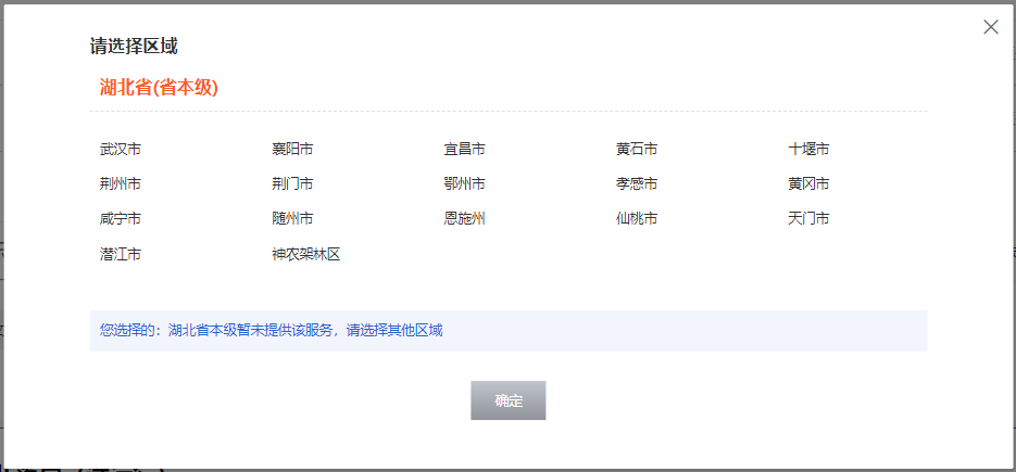 图:湖北政务服务网个人身后“一件事”办理区划选择