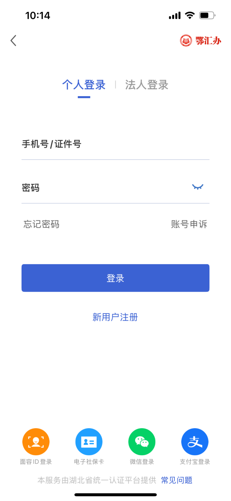 图:鄂汇办APP注册登录页面