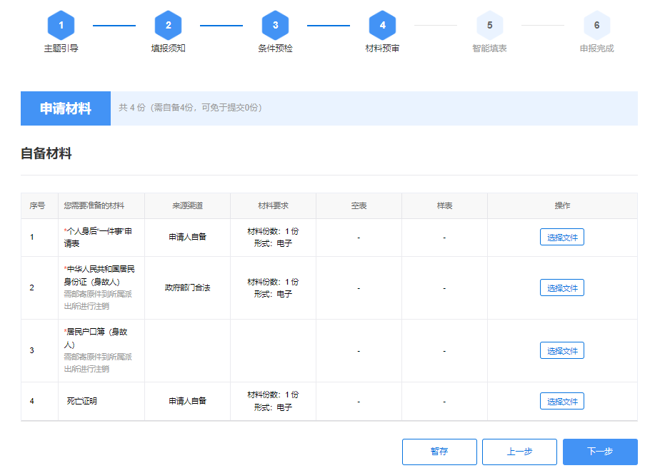 图:湖北政务服务网个人身后“一件事”材料上传页面
