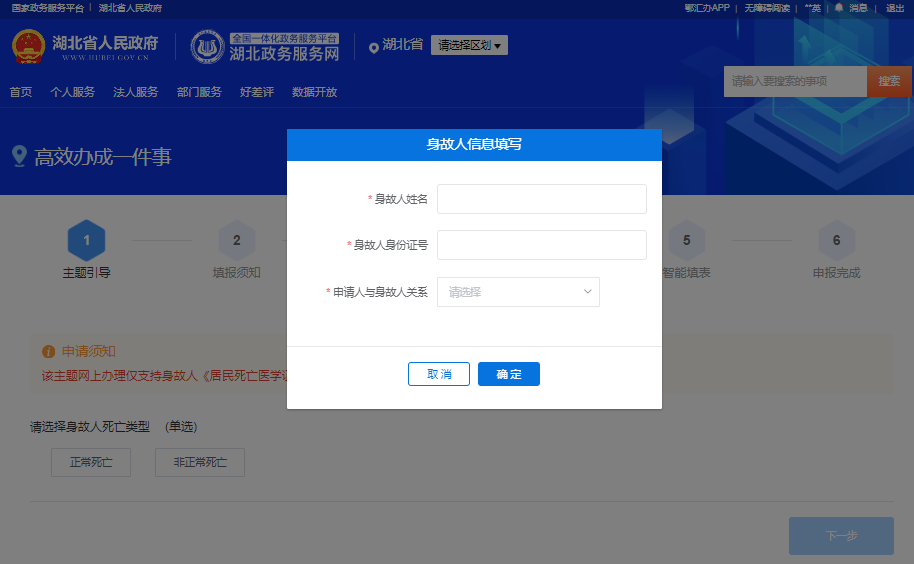 图:湖北政务服务网个人身后“一件事”填报须知页面