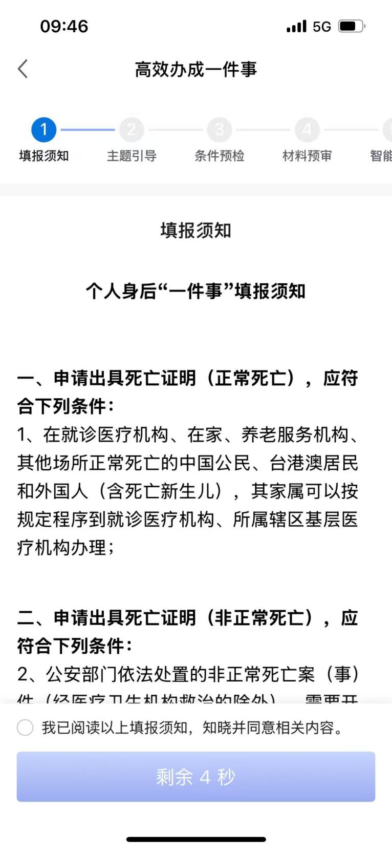 图:鄂汇办APP专栏个人身后“一件事”条件预检页面
