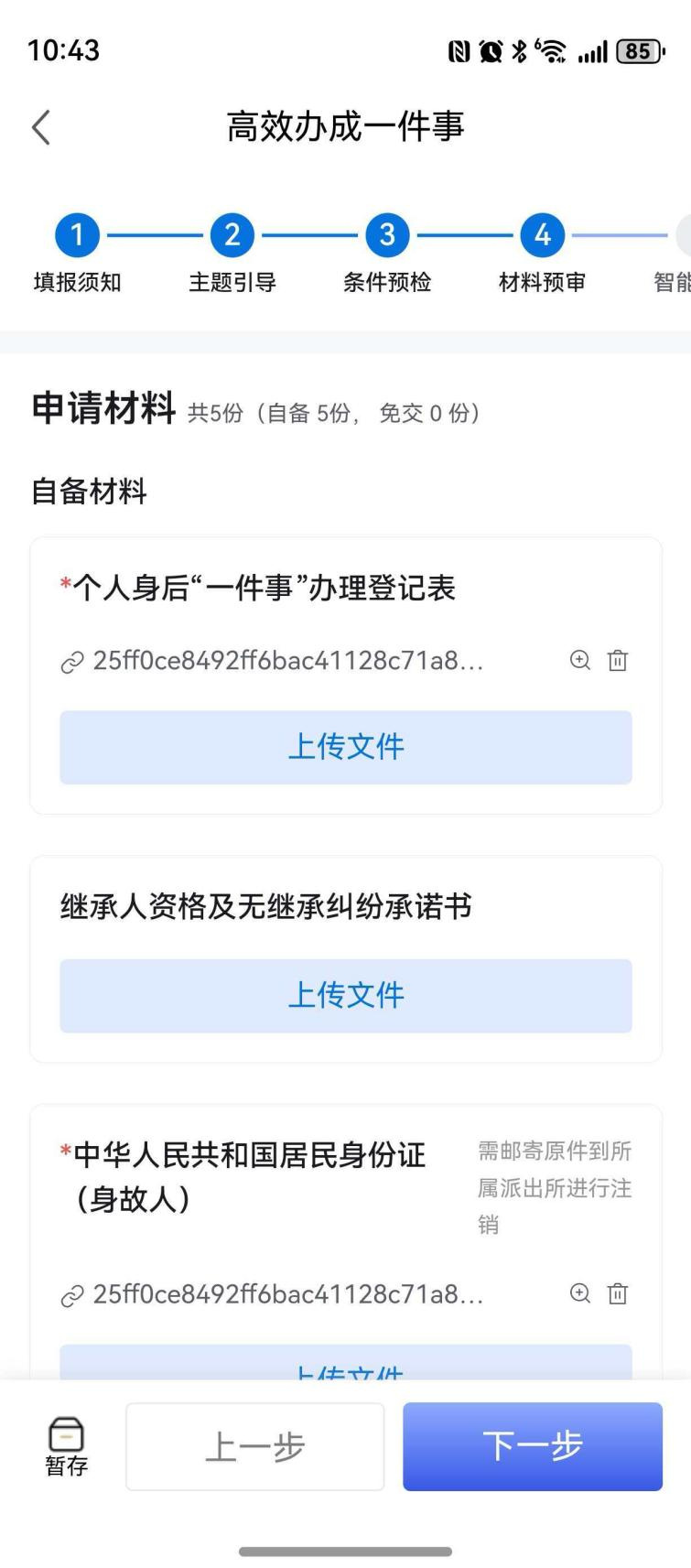 图:鄂汇办APP个人身后“一件事”材料上传页面