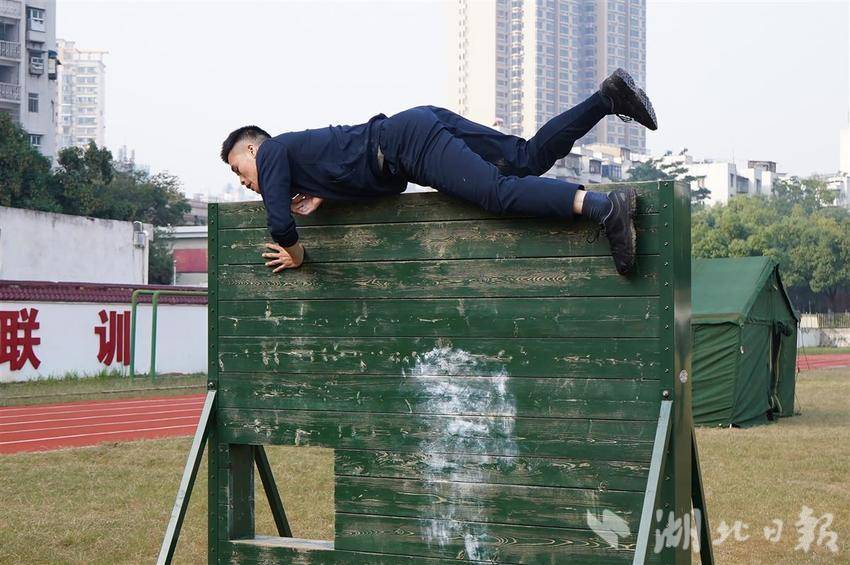 官兵在400米障碍场上攀高板。(湖北日报全媒记者 任勇 王际凯 通讯员 唐谨 粟毅 摄)