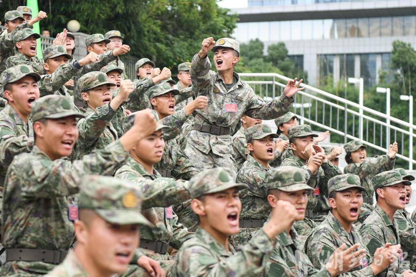 看台上的官兵为选手们呐喊助威。(湖北日报全媒记者 任勇 王际凯 通讯员 唐谨 粟毅 摄)