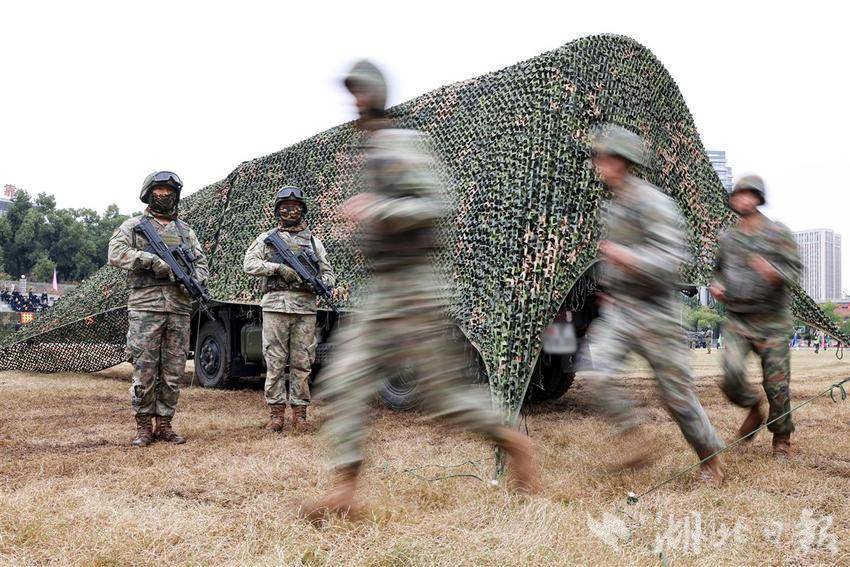 车辆伪装防护考核环节。(湖北日报全媒记者 任勇 王际凯 通讯员 唐谨 粟毅 摄)