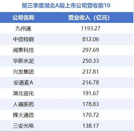 前三季度营收排名前10的湖北A股上市公司。