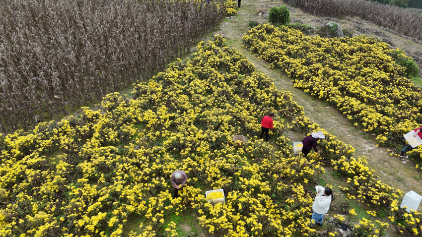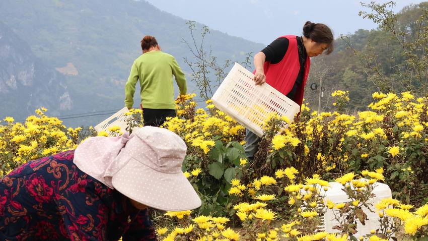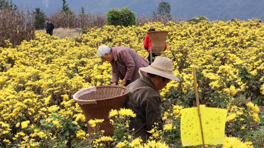 “村里发展菊花产业后,我们农闲时也能在家门口挣钱了!”村民毛德奉一边熟练地采摘菊花,一边高兴地说,“采摘季大概一个月,一天有100元左右的收入,多劳多得,算下来能挣三四千元。”像毛德奉一样,不少村民在农忙结束后,依然能通过菊花产业获得可观收入。