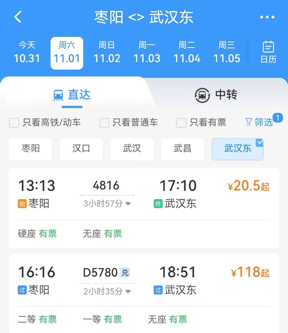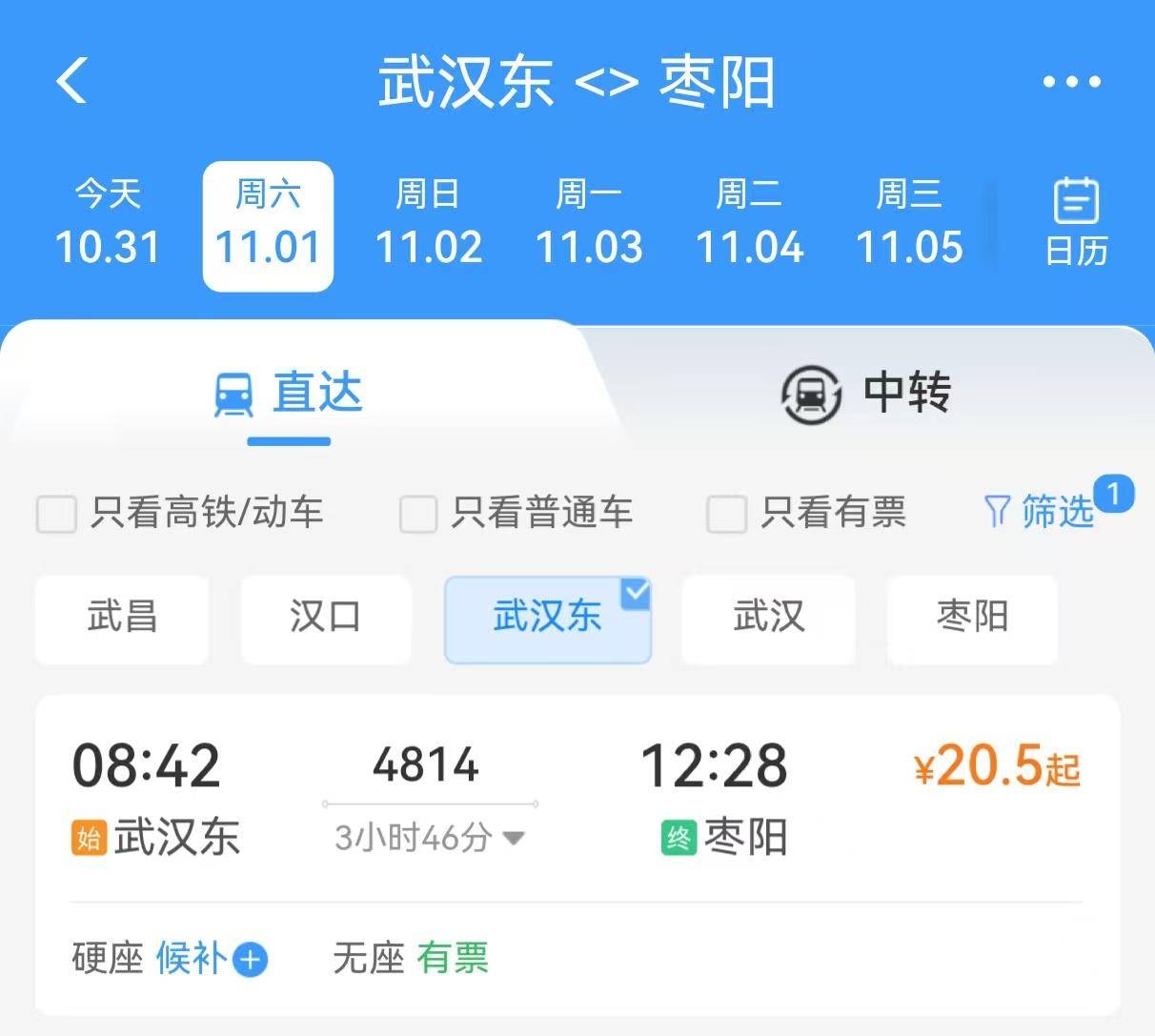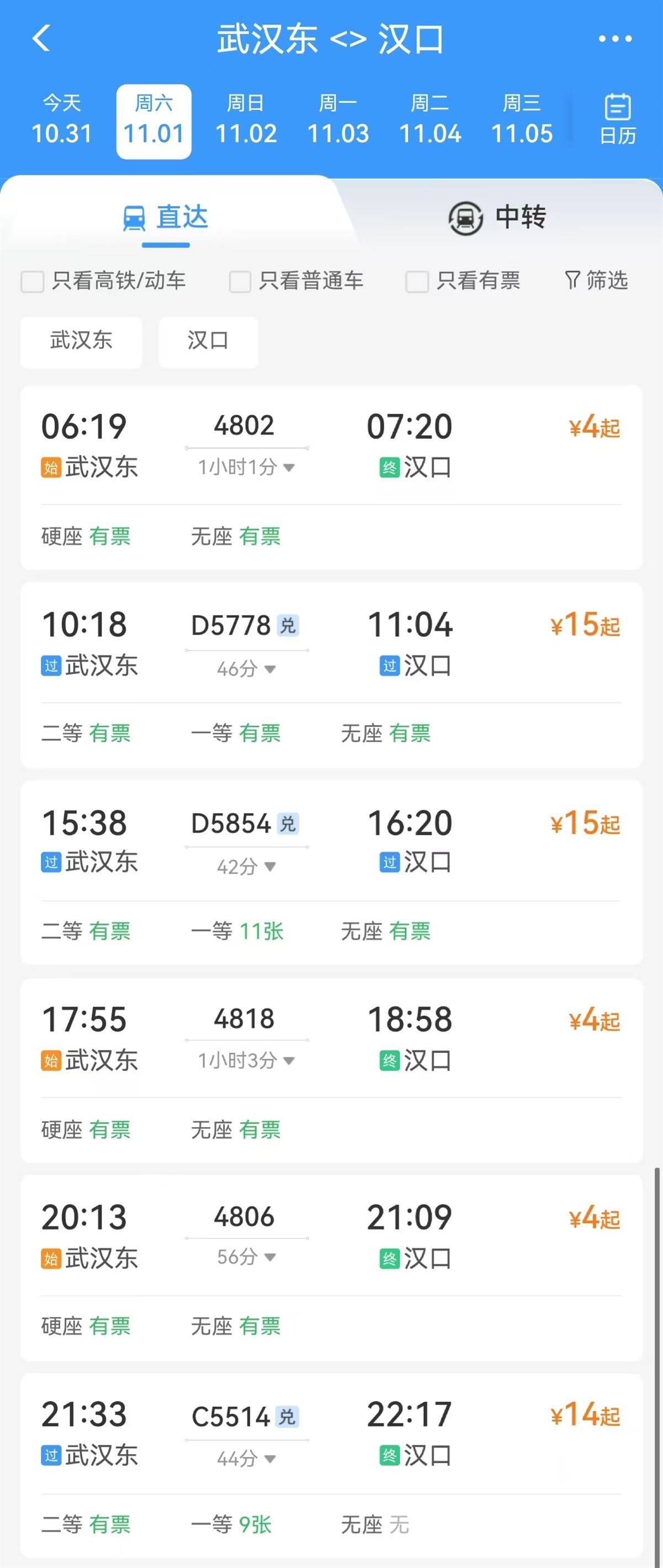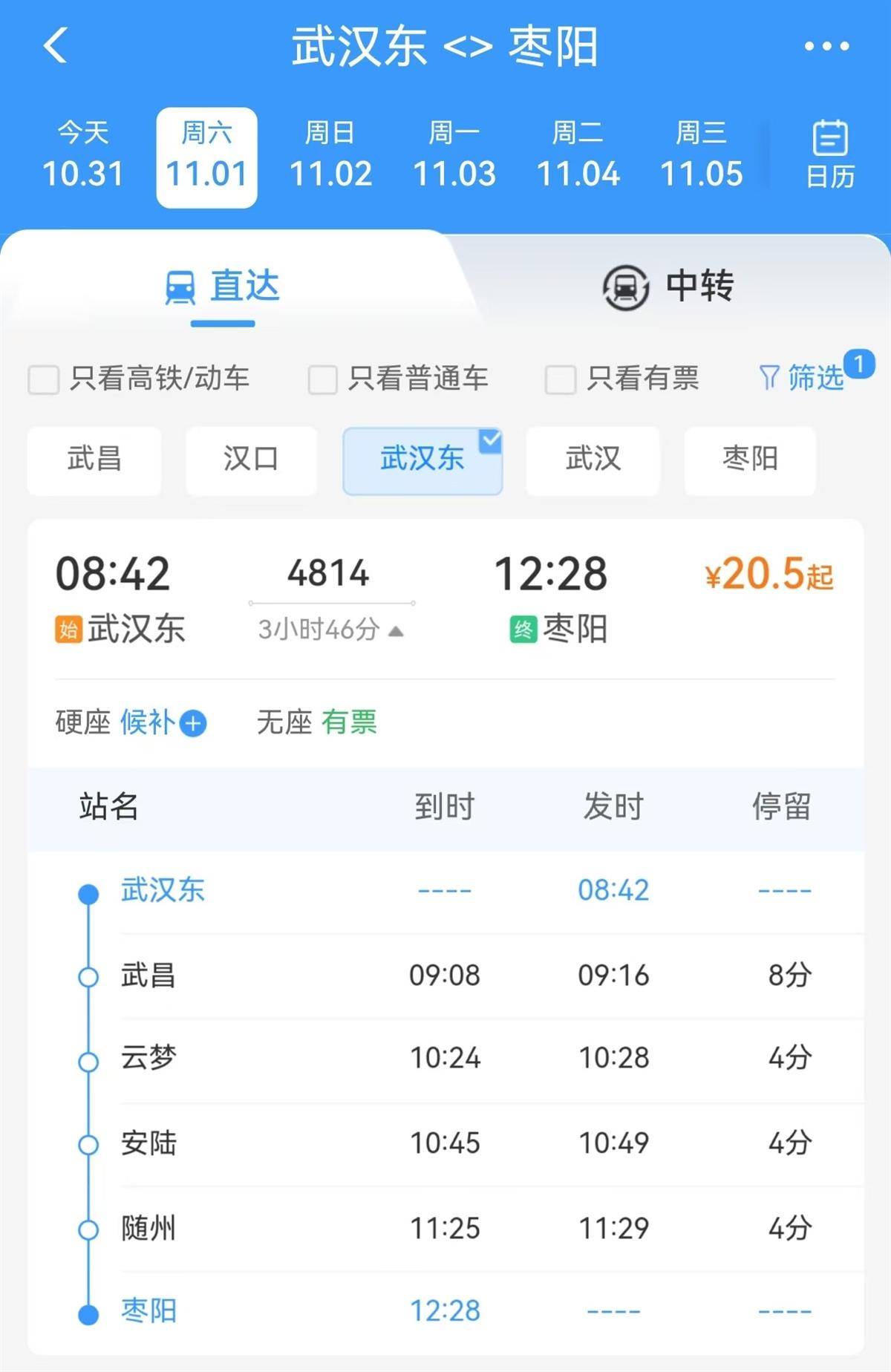 湖北日报讯 (通讯员赵倩)11月1日起,武汉东站每日开行9趟往返汉口站、武昌站、枣阳站的普速列车,武汉东至汉口站票价仅4元,武汉东至枣阳途经云梦、安陆、随州等地,实现武汉东站、武昌站、汉口站三大火车站互联互通。